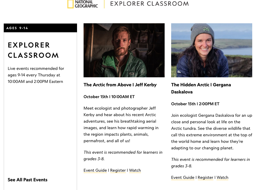 Explorer classroom [Web page] (2020). Retrieved from https://www.nationalgeographic.org/education/student-experiences/explorer-classroom/